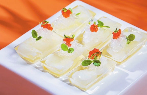 SHENZHEN Marriott Hotel Nanshan has launched a selection of summer dishes at its Man Ho Chinese restaurant, which showcases an indelible charm of summer based on seasonal ingredients. Compared with the fresh taste of spring, the summer cuisine focuses more on the balance between flavors and ingredients-sourcing. Therefore, ingenious preparation helps create a series of classic summer delicacies. Man Ho has always been focusing on presenting delicious food to echo the changing seasons. Under the leadership of Wayne Wang, the chef team inherits the spirit of “The Mind Menu” to create a variety of inspired summer dishes. The “Summer Highlights” dishes not only convey the creativity of the chefs, but also embody Man Ho’s care for diners. The crafted menu features five appetizers, five hot dishes and a soup. Chilled moringa leaves with chili oil, a recommended appetizer, exudes the delicate fragrance of wild vegetables. The tossed green apple and crab meat salad with peas is enticing, as green apples and crab meat are hidden under the sweet beans, and the dish is seasoned with a fermented vinegar of pine needles. The chilled Chongming golden melon with caviar is made of the specialty of Chongming Island, giving a crisp and rich taste with a scallion flavor. Chilled litchi jelly with bird’s nest, the only alcoholic cold dish, has a fresh taste of litchi and lemon. The chilled mango with lobster and caviar attracts diners with its exquisite plate-settings, and the bright colors make the lobster more tempting. The ingredients of double-boiled fish maw soup with bitter gourd and tangerine peel were carefully selected for their nutritive value. For hot dishes, smoked barbecued wagyu beef with black truffle and mushroom is the most dazzling, as the sunflowers provide a hint of nature to the smoky flavor. The stir-fried sleeve fish with Teochew pickles blends into the local flavors with a soft and waxy texture. The steamed Kegani crab with preserved turnips and aged vinegar contains a few ingredients such as minced pork and yellow pepper to give the steamed crab its rich taste. (Yang Mei) |