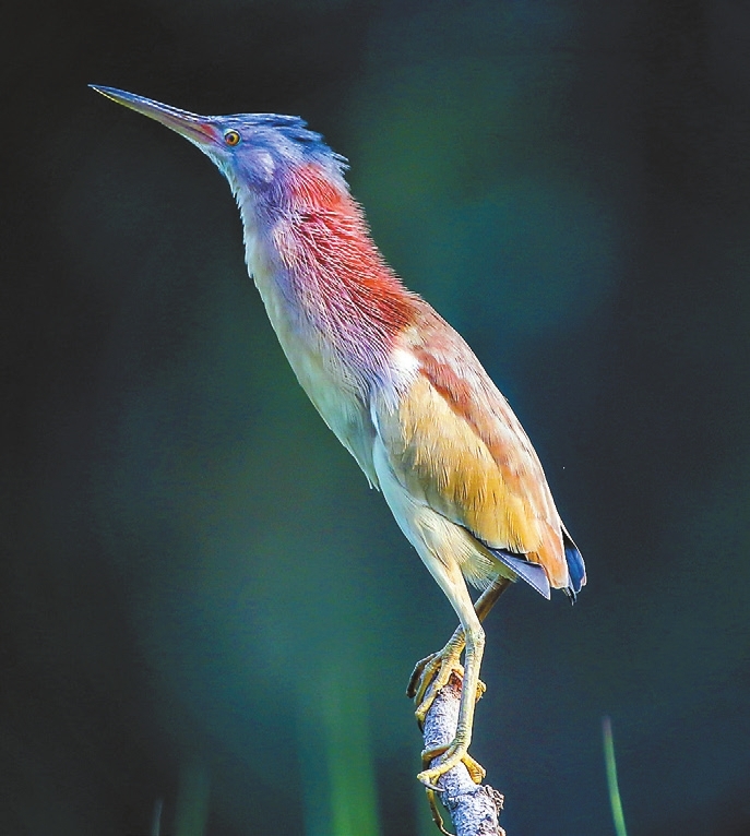 The fascinating yellow bittern (Ixobrychus sinensis), a resident bird though not too abundant in the city, always attracts the attention of bird lovers. The medium-sized bird, with its astonishing characteristics, will amaze even the less enthusiastic of spectators. The bird can grow up to 40 centimeters in length, with a wingspan measuring around 50 centimeters. Its head is decorated with a beautiful dark blue crown that contrasts with its brown forehead and its beautiful light brown throat that at the same time is decorated with stripes. The sides of the bird are a reddish brown, and its back is brown as well. The underparts of the wings display a striking dark blue at the tips and the bird has a black tail. The legs are yellow and green; the eyes are yellow; and the beak displays a whitish color with a slight tint of yellow. Females can be paler, with darker patches under the wings. Yellow bitterns love inhabiting bushy marshes and water bodies surrounded by dense vegetation. Though not easy to find and see, they are a total delight to observe if you are lucky to meet them. The bird sometimes stretches its neck from a low overlying branch into the surface of the water to catch small fish, crustaceans, mollusks, larvae or insects. They move slowly and secretly, being good fishers. Depending on the place they inhabit and primarily the temperature of the region, their breeding season may vary slightly from one population to another. The birds in China are generally active from May to August, producing clutches of up to six eggs that will be incubated for about three weeks by both parents. Newborns will receive food from their parents for two to three weeks, after which they will be ready to leave the nest. Yellow bitterns are definitely one of the species that we cannot miss in our beautiful and diverse city of Shenzhen. |