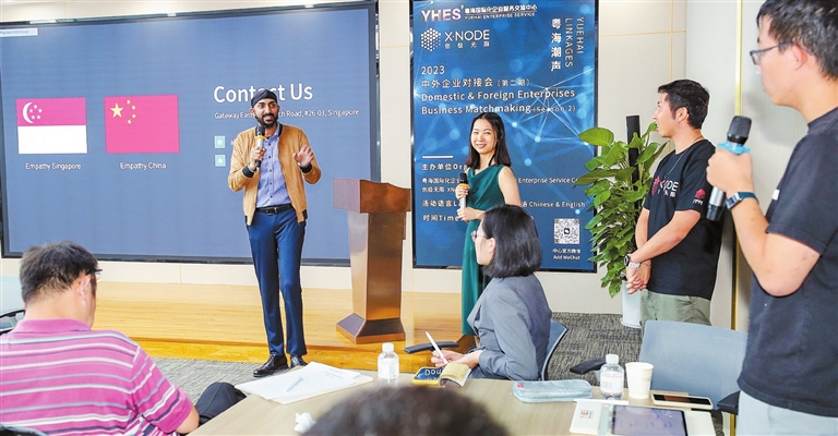 Attendees listen to a speaker at a Sino-foreign enterprise matchmaking conference held at the Yuehai Enterprise Service Center in Yuehai Subdistrict, Nanshan District recently. The event aimed to create a platform for cooperation and exchange between enterprises from Singapore and Shenzhen, exploring potential collaboration opportunities. During the matchmaking conference, two Singaporean companies showcased solutions related to innovative technology services, which captivated the attention of the attendees. Zhou Hongsheng |