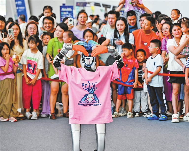 A humanoid robot interacts with visitors at the 2025 World Smart Industry Expo, which closed yesterday in southwestern China’s Chongqing. The expo highlighted how AI is empowering industry and everyday life, with more than 600 companies showcasing over 3,000 smart products. According to the Ministry of Industry and Information Technology, China’s AI sector has surged in recent years, with the number of AI firms now topping 5,000.Xinhua |