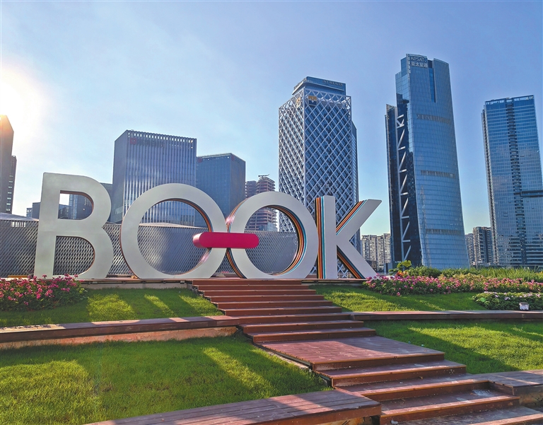 An exterior view of the Bay Area Store of Shenzhen Book City in Qianhai. As the world’s largest physical bookstore and a landmark cultural tourism destination in the Guangdong–Hong Kong–Macao Greater Bay Area (GBA), the facility opened to the public Friday. Dubbed the “Eyes of the GBA,” the complex spans a colossal 131,000 square meters, combining reading spaces with art, technology, exhibitions, performances, and tourism. Metro: Line 5 to Baohua Station (宝华站), Exit A1.Courtesy of Shenzhen Publishing Group |