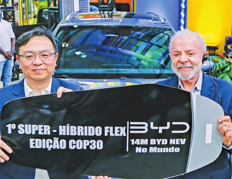 BYD chairman and president Wang Chuanfu (L) presents the company’s 14-millionth new energy vehicle (NEV) to Brazilian President Luiz Inacio Lula da Silva as a gift at a ceremony in Brazil. The Shenzhen-based automaker announced Friday that its 14-millionth vehicle rolled off the production line at its factory in Camacari, Brazil, on Thursday, making it the world’s first NEV automaker to reach that figure. The car, a BYD Song Pro, was presented to President Lula as a gift and registered in his name. BYD has operated in Brazil for more than 11 years and serves over 170,000 local customers. The company has been the top seller in Brazil’s NEV market for two consecutive years and now holds 74.4% of the country’s electric vehicle market by total sales.Official Weibo account of BYD |