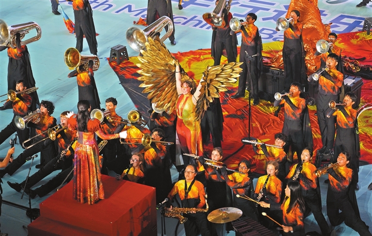 Zhang Yu JeniZhang13@163.com IN a vibrant display of cross-cultural harmony, hundreds of teenagers from the U.S. and China came together for a large-scale marching band exchange gala at the University Town of Shenzhen Sports Center yesterday. The event featured students from Valley Christian Schools from San Jose, California, and Clarksburg High School and Thomas S. Wootton High School from Maryland, alongside local performers from Shenzhen. The performance kicked off with the Chinese students presenting “Dragon Soaring, Tiger Leaping,” a powerful and culturally rich opening. This was followed by a series of marching band performances by both Chinese and American students. The event not only highlighted the distinct styles of marching band performances from both countries but also showcased a collaborative rhythm, reflecting the energetic spirit of youth cultural exchange. In post-performance interviews, American students shared their excitement about performing in China. “This is the first time I’ve ever been international. It’s been really exciting,” said Chloe Nyberg from Valley Christian. Adrian Alagic from Thomas S. Wootton High added, “It’s really great to be among people who also enjoy music and can be brought together by music.” When asked about their impressions of Chinese performances, Nyberg noted, “The differences in the way they performed, their costumes, what they were performing with all the lucky dragons… it was really cool to see, especially where the culture is open because it is the country where it originated from.” Zhang Zhimeng, a student from Shenzhen Nanshan Foreign Language School (Group) Second Experimental School, said, “I feel very honored to perform with American friends. I hope to stay in touch through WeChat and continue exchanging with them.” After the final bow, the young performers exchanged contacts, took selfies, and shared laughs, turning the event into a memorable encounter beyond the stage. The exchange provided a platform for young artists from both countries to showcase their talents, learn about each other’s cultures, and plant the seeds of lasting friendship. As Alagic put it, “It’s a great country for sure. If I have the opportunity, I would love to come back.” The young American performers are scheduled to have a pop-up roadshow at Shenzhen Talent Park this afternoon. |
