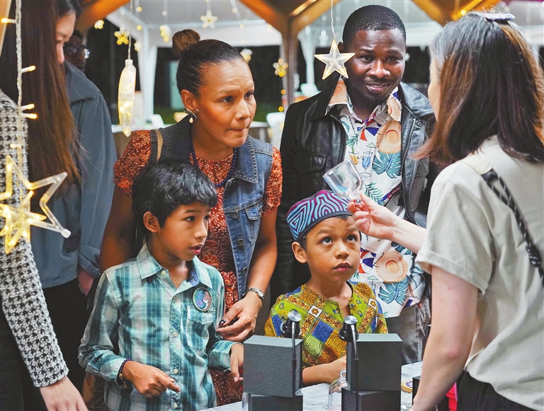Shenzhen University Ph.D. candidates Verónica González (L in the back row) from Panama and Frank Sesu (R in the back row) from Ghana browse eco-creative products at an eco-living bazaar during the 2025 International Mangrove Night, which began yesterday at the Shenzhen International Garden and Flower Expo Park. This two-day event, concluding tonight, features five exhibition zones highlighting global mangrove conservation and cutting-edge ecological technologies. The eco-living bazaar gathers around 70 stalls from Hong Kong and Shenzhen, showcasing eco-friendly designs and handicrafts. During the event, visitors can also enjoy immersive experiences — stepping into a virtual mangrove scene using MR technology and even “diving” underwater. Today marks the first anniversary of the International Mangrove Center agreement. On Nov. 6 last year, representatives from 18 countries gathered in Shenzhen to sign the founding document. Metro: Line 1 to Zhuzilin Station (竹子林站), Exit B2/B1; or to Qiaocheng East Station (侨城东站), Exit A.Lin Songtao |