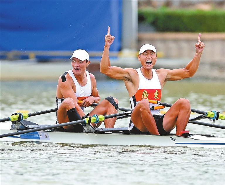 The Guangdong duo of Ni Xulin, from Shenzhen, and Nie Yide clinched the gold medal in the men’s double sculls rowing final at the 15th National Games yesterday, with a time of 4:36.49. This victory marks the first gold for both Guangdong and Shenzhen since the Games officially opened Sunday night P3 > SHENZHEN |