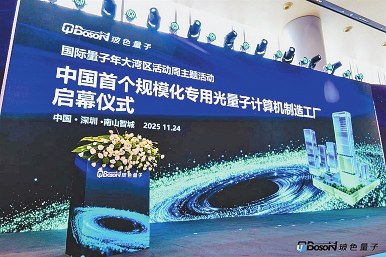Editor’s note: Shenzhen is composed of nine administrative districts, one new area, and the Shenshan Special Cooperation Zone in Shanwei. While all 11 areas share Shenzhen’s defining spirit of innovation, each has its own unique characteristics. This page focuses on the latest developments in Nanshan District. Widely recognized as an economic, scientific, and technological powerhouse of both Shenzhen and China, the district is celebrated for its vibrant culture of innovation and entrepreneurship. A SIGNIFICANT milestone in China’s quantum computing industry was reached Nov. 24 with the inauguration of the nation’s first large-scale, dedicated optical quantum computer manufacturing facility in Nanshan District. Built by Beijing-based Boson Quantum Technology, the new factory marks a critical transition for practical, coherent optical quantum computers in China, moving from “proof-of-concept in the laboratory” to “mass production on the factory floor.” This advancement fills a key gap in the scalable production of quantum hardware, establishing a self-reliant “Made in China” capability in this cutting-edge field. Optical quantum computing leverages the quantum properties of light to perform computations and is considered a leading technical approach. Compared to other quantum computing methods, it does not require ultra-low temperatures and offers advantages such as larger qubit scale, stable operation at room temperature, and long coherence times. These characteristics make it suitable for near-term engineering and a promising form for commercial quantum computers. Located in the Liuxiandong Strategic Emerging Industries Headquarters Base, the 5,000-square-meter facility integrates R&D, manufacturing, and testing to enable the engineering, standardization, and scaled production of optical quantum computers. It is divided into two main functional sections: a clean production area and a comprehensive support zone. Wei Hai, chief technology officer of Boson Quantum, explained that the core clean production area functions like a “sterile operating room” for quantum computers. To maintain quantum stability, the company has implemented a five-fold protection system encompassing personnel purification, air cleanliness, precise microclimate control, specialized flooring, and strict behavioral protocols. The production of an optical quantum computer involves seven major processes, 223 distinct procedures, and over 1,000 specific work steps. The factory features two core equipment production zones: a southern zone dedicated to the nanometer-level precision alignment and fixation of optical modules and a northern zone responsible for integrating the qubit initialization and readout systems. Together, they form a complete, closed-loop manufacturing process for the quantum computer’s core. “The role of the quantum computer is to solve complex problems that are currently intractable or inefficient for classical computing,” said Ju Jiangwei, vice president of Boson Quantum. “It can be applied across numerous industries, including biopharmaceuticals, finance, energy, and communications.” He added that Shenzhen’s complete electronic information industry chain and rich talent pool were key factors in locating the factory there, which is expected to drive the development of the entire upstream and downstream industrial chain. The company has already initiated in-depth collaborations with partners such as the Guangzhou Laboratory, China Mobile, XtalPi, Shenzhen Metro, and Ping An Group, validating the significant advantages of its optical quantum computers in solving complex problems across various scenarios with greater efficiency and quality. Wen Kai, founder and CEO of Boson Quantum, stated that the factory aims to achieve an annual production capacity of dozens of dedicated optical quantum computers. With the anticipated expansion of the domestic market for these machines, further scaling up of production is already planned.(Zhang Yu) |