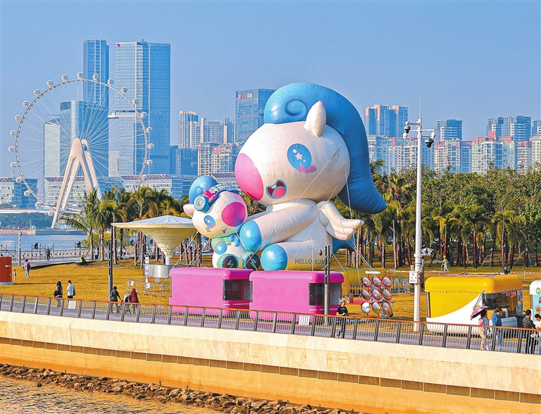 A 15-meter-tall giant inflatable model of Hello Koma — an original Shenzhen IP — appears at Qianhai Stone Park for the first time. Serving as a mascot of the Guangdong-Hong Kong-Macao Greater Bay Area, Hello Koma embodies the region’s development ethos: openness, inclusiveness, innovation, and collaboration. It made its debut at the Greater Bay Area Flower Show in Shenzhen in 2021.He Long |