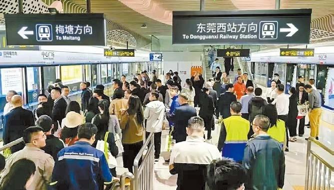 A NEW shuttle linking the terminus of the Shenzhen Metro Line 6 spur with the terminus of Dongguan Metro Line 1 has launched, offering a seamless connection between the metro networks of the two cities and drawing keen interest from cross‑city commuters. Dongguan’s Metro Line 1 began passenger service on Nov. 28. The line runs 57.478 kilometers and serves 25 stations, connecting 10 townships and industrial parks. It intersects the already‑operational Line 2, further expanding Dongguan’s metro network. The line is planned to eventually run through Guangzhou’s Huangpu New Port to the north. Commuters can transfer between the two cities’ underground rail systems via the newly opened shuttle bus. After exiting SUAT Station (深理工站) — the terminus of the Line 6 spur — passengers can board the shuttle directly to Meitang Station (梅塘站), the terminus of Dongguan Line 1. The shuttle runs from 6:30 a.m. to 10:30 p.m., every 10-15 minutes. A single fare costs just 3 yuan (US$0.43). The main line of Shenzhen Metro Line 6 begins at Science Museum Station in Futian District, passes key stops including Shenzhen North Railway Station, Longhua, Shiyan and Guangming, and terminates at Songgang in Bao’an District. It spans 49.7 kilometers and has 27 stations. Its northern spur departs from Guangming and runs roughly 6.13 kilometers to the border of Shenzhen and Dongguan, with four stations along the route. Transport authorities in both cities are pursuing further rail interconnections. Plans include an eastward extension of Line 10 and a northward extension of Line 11 to connect with Dongguan Metro Line 3. Upon completion, these links will enable direct rail access between Shenzhen and Dongguan’s Fenggang, Songshanhu and Binhaiwan New Area, further integrating the regional transit network. More information on Dongguan Metro Line 1 Service hours 6:30 a.m. to 10:35 p.m. for trains bound for Dongguanxi Railway Station (东莞西站) 6:30 a.m. to 10:30 p.m. for trains bound for Meitang Station (梅塘站) Intervals Trains run every 5 to 8 minutes during peak hours, and every 8 to 10 minutes off‑peak. Fares Fares start at 2 yuan for the first 4 kilometers, with a maximum fare of 11 yuan for the full route.(Wei Jie) |