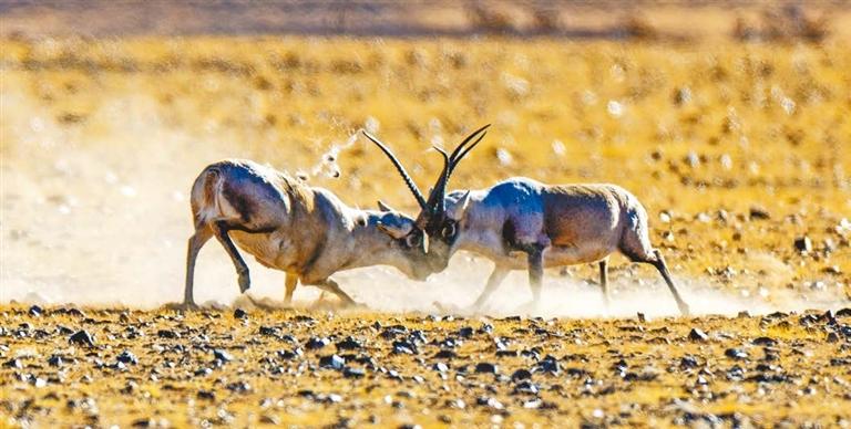 LOCATED in the northern part of Xizang with an average altitude exceeding 4,500 meters, the Changtang National Nature Reserve is home to over 30 kinds of wild animals listed on China’s national-level protection catalogue, including Tibetan antelopes and wild yaks. Millennia-old glaciers, crystal-clear lakes, and vast sand dunes coexist here in an extraordinary landscape, which covers a total area of about 298,000 square kilometers. (Xinhua) |