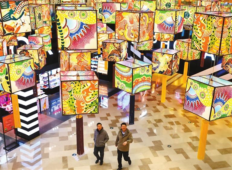 Artworks created by the inheritors of the Wang family’s shadow puppetry troupe enchant visitors in a shopping mall in Beijing yesterday. Based in Shaanxi Province, the Wang family troupe has a history of more than 200 years and is renowned for its puppet-making, especially carving skills. As one of China’s oldest folk art forms, shadow puppetry — a mesmerizing blend of painting, carving, storytelling and singing — has been inscribed into the UNESCO Representative List of the Intangible Cultural Heritage of Humanity.China News Service |