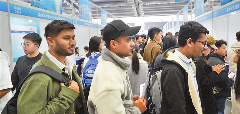 Wei Jie claudiamente@hotmail.com THE Shenzhen booth at the Shenzhen Convention and Exhibition Center in Futian District was packed with young jobseekers Saturday, when a large employment fair kicked off with 1,825 enterprises from the Guangdong-Hong Kong-Macao Greater Bay Area offering more than 65,000 job openings. Part of the 2025 “Million Professionals Converge in Guangdong” initiative, the two-day event featured a dedicated APEC Economies Recruitment Zone for companies seeking to hire overseas returnees and international students, with roles available in regions such as Southeast Asia, the Middle East, and Africa. The fair targeted fresh graduates, interns, domestic and overseas students and skilled elites, drawing nearly 150,000 attendees from over 1,700 universities at home and abroad, official figures showed. Opportunities covered the full talent spectrum: nearly 9,000 doctoral positions, over 12,000 master’s positions, and more than 35,000 bachelor’s positions. Some companies such as Fangda, Xpeng, and Sunwoda offered over 8,000 associate/technical roles. Compensation was highly competitive: almost half of the positions carried annual salaries above 200,000 yuan (US$28,500); more than 4,000 roles offered between 500,000 and 1 million yuan; over 600 roles exceeded 1 million yuan. Bruno Ribeiro Amorim, a Brazilian postgraduate majoring in business administration at the Harbin Institute of Technology (HIT), Shenzhen, sent out seven resumes to large international companies for roles relevant to business development, logistics, sourcing, and procurement. “All these roles are very interesting to me. There were positions open in Brazil, but right now my main interest is here. My objective is to stay in China and do business here for many years.” Samin Mohammad Abdullah from Bangladesh, a major in computer science, is focused on technology consultant or analyst positions and enjoys working with AI, with an eye toward an R&D career. Belarusian student Kulaha Stanislau, who has an engineering background for his bachelor’s degree and now studies business administration at HIT Shenzhen, is seeking fintech roles. “I have had deep discussions with a financial company.” Stanislau said that working in China requires a deeper understanding of the local environment and hands-on industry experience beyond the student context, so he is eager to gain that exposure. “Shenzhen’s strong entrepreneurial support make it an ideal place to learn, test ideas, and scale impact,” he said. Bazina Daria, from Russia, is drawn to international marketing operations in consumer goods firms, where she can apply skills in global strategy, market analysis, and cross-cultural communication. |