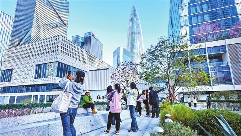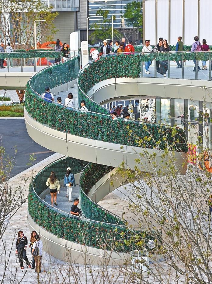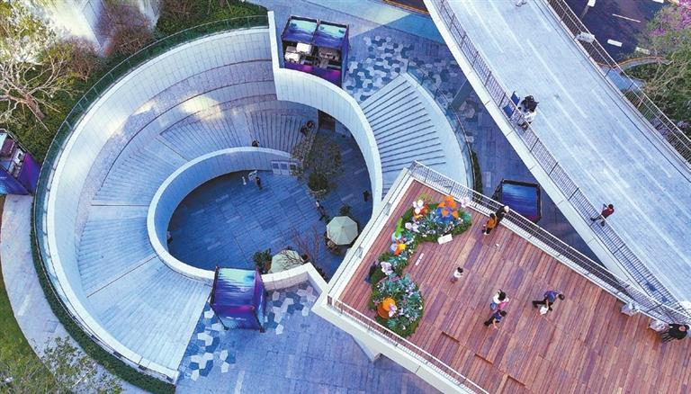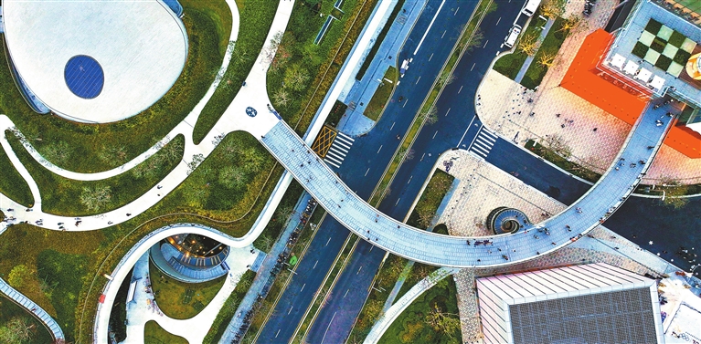 Zach Mills szdaily@126.com IN many high-density urban areas, walking can be an ordeal: waiting at crosswalk lights, watching for careless drivers, and navigating the noise and scale of the arterial roads. What looks like an easy walk on a phone map is, in practice, a journey of interruptions, sensory assault, and anxiety. Consequently, many pedestrians retreat into headphones and screens, mentally checking out of a disconnected urban environment. But this mental detachment comes at a cost, denying us the full richness of city life. Human needs extend beyond the basics of survival and sustenance; we crave a diverse array of experiences including culture, social interaction, and a connection with nature. Shenzhen’s Houhai area — the city’s financial business hub — promises to meet these desires within a compact 2-kilometer radius. The area packs a dense mix of corporate headquarters (such as Alibaba and Tencent), residential towers, and massive retail complexes like The MixC, alongside cultural anchors like the Poly Theater, the bayside Talent Park, and Shenzhen Bay Cultural Square, an exhibition space with an urban garden as its roof. However, these urban assets are disconnected by a grid of busy arterial roads — three cutting east-west and one north-south — that fracture the pedestrian experience. This friction reveals an inherent contradiction in mega-cities: the clash between logistical efficiency and human experience. Central business districts (CBDs) are efficient because businesses are concentrated in high-rises within a small area. Yet, this concentration necessitates a dense road network for vehicles to facilitate the rapid transit of people and goods. In this arrangement, walking is viewed as a utilitarian necessity. Pedestrian sidewalks, crossings, tunnels, and footbridges are designed around efficiency and costs. There is no view from which to appreciate or remember the city, and one can hardly have a conversation without worrying about blocking others. It makes walking feel like the movement of cargo. The newly completed Shenzhen Bay Avenue project aimed to change that situation by literally elevating the pedestrian experience. Stretching 2 kilometers across the Houhai CBD, the project is a network of above-street-level walkways that spans major roads, creating a continuous “second ground” and reviving the very human experiences lost at the street level. The ‘second ground’ Two lead designers of the project — Liu Xiaoqi (刘晓琦), the creative director of Integrated Planning and Design (IPD), and He Jiakun (何嘉堃), a partner at Z Design Group (ZDG) — outlined their vision for the project during a recent interview. Liu acknowledged that “in high-density areas like Houhai, where land is at a premium, public space is often relegated to an afterthought,” and “vehicles and pedestrians compete for space on the street level.” Her colleague concurred. He traced the tension to a “structural contradiction” between CBDs’ need for efficiency and the human need for public space. Both designers noted that high-density, mixed-use development brings a level of economic efficiency that is indispensable to a CBD. Nevertheless, they wanted to achieve a balance between that “efficiency narrative” and a human-centric “experience narrative.” When we only think of efficiency, He said, pedestrian infrastructure is conceived as merely “a tool for passage.” To Liu, pedestrian infrastructure should be “a vessel for public life… When people linger, meet, speak, and share a view of the city,” our social network is restored. In this way, Liu said, the walkways become “a social catalyst.” To foster the pedestrian experience, He explained, the design team methodically deployed four spatial techniques: linking, dwelling, framing, and figuring. First, the walkways link the various contexts in which human beings reside — the workplace, the retail district, the museum complex, and the ecological parks — penetrating barriers of roads and elevation differences. Second, the walkways widen to up to 40 meters at key nodes to create plazas conducive to micro-events — street performances, pop-up stalls, and casual meetups. Instead of a transient corridor, the walkways are a “public living room” that engenders a sense of belonging. Third, by deliberately widening, narrowing, turning, and folding the walkways, the designers curated memorable views of the city skyline and the bay for pedestrians. Finally, the design ensures the walkways are memorable urban sculptures; its distinct organic silhouette and expressive structural “branches” stand out against the backdrop of glass towers. Delivering the vision At first glance, the walkways appear to float effortlessly. They snake through Houhai with fluid curves, resting on columns that branch out like trees and are often tilted. It is easy to dismiss the winding path and the forked or tilted columns as mere aesthetic flourish. However, according to He, this “organic” geometry was necessary. As it turns out, creating a “second ground” is easier said than done. The project had to thread its way through a dense web of immovable street-level obstacles — garbage collection sites, bus terminals, and other utility structures — and navigate a rigid, jagged canyon of buildings and skyscrapers. However, the most critical challenge was invisible. Beneath Houhai’s streets lies a “minefield” of infrastructure, including three intersecting subway lines, vast parking structures, and dense utility networks. This subterranean congestion made finding suitable drop points for structural support columns a geometric puzzle, He explained. In several instances, the only usable column drop points were not even located directly under the walkways, requiring inclined columns. Imagine trying to hold up a tray on a single fingertip at a tilt. To hold up and balance the deck, He’s team designed columns that