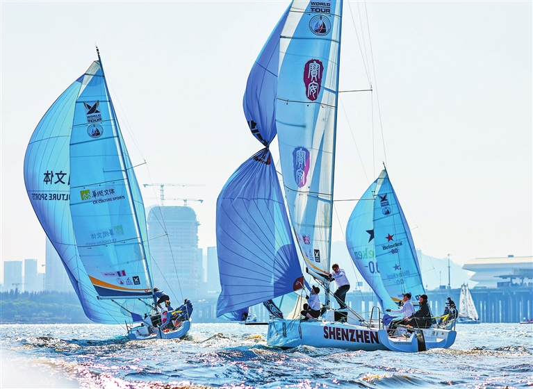 Boats compete during the 2025 World Match Racing Tour (WMRT) Shenzhen • Bao’an Final, which began yesterday in the waters off OH Bay, Bao’an District. The competition, which runs through Jan. 11, boasts a total prize purse of US$200,000. The tournament, which 16 world-class skippers are participating in, marks Shenzhen’s first major international sporting event of 2026, dubbed the APEC “China Year.” As one of World Sailing’s top 10 special events worldwide, the WMRT is hailed as the “F1 on water.” Liu Xudong |