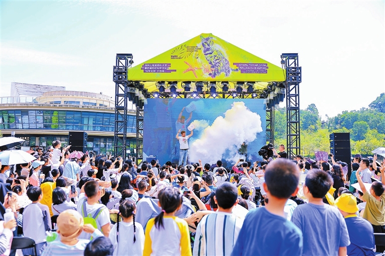 SHENZHEN MSU-BIT University (SMBU) held its fourth Science and Culture Festival from Sept. 13 to Oct. 26, featuring over 200 events that drew more than 200,000 participants. Themed “Your Quantum Universe,” the festival included academic discussions, cultural exchanges, and popular science initiatives involving students, faculty, and the general public. At the opening ceremony, SMBU President Li Hezhang noted that the festival — co-curated by Lomonosov Moscow State University (MSU) and the Beijing Institute of Technology (BIT) since 2022 — serves as an open educational platform. It deepens China-Russia exchanges in education, science, technology, and culture while broadening students’ horizons, fostering friendship, and inspiring innovation. A highlight of the festival was Open Week, which hosted over 100 popular science events between Oct. 20-26. The last two days were accessible to the public. Russian Deputy Prime Minister Dmitry Chernyshenko delivered a video address to mark the launch of Open Week. Titled “Science Without Borders,” the event serves as a prelude to the China-Russia Year of Education 2026-2027, a joint initiative proposed by Russian President Vladimir Putin and Chinese President Xi Jinping. The minister explained that during Open Week, the public could attend lectures by leading scholars and join hands-on workshops, masterclasses, and various creative activities. In his video message, MSU President Viktor Sadovnichy described Open Week as a gift to all who believe “scientific and cultural progress is the foundation and goal of international cooperation.” He outlined the week’s academic agenda, including forums and roundtables on cutting-edge scientific topics, noting these discussions would showcase the interdisciplinary evolution of modern science and its close links to daily life. During Open Week, academicians and top scientists from China and Russia gave lectures spanning quantum science, space exploration, life sciences, and sponge cities. Andrey Naumov, corresponding member of the Russian Academy of Sciences, delivered a lecture on quantum and photonic technologies. Starting with everyday applications of quantum technology, he guided the audience through its development history and highlighted its potential to revolutionize future life. Pan Gaofeng, deputy director of China’s FAST Operation and Development Center, gave a lecture titled “Listening to the Pulse of the Universe.” He shared the arduous construction process of, and the landmark achievements brought by, the Five-hundred-meter Aperture Spherical Radio Telescope (FAST). Located in Guizhou Province and open to global astronomers since early 2021, FAST is the world’s largest filled-aperture radio telescope. Abstract scientific theories came to life as interactive games in on-campus experience zones, allowing the public to explore science through hands-on activities. A gasp swept the crowd when a science show host poured hot water into liquid nitrogen, creating a billowing cloud of white mist. At the central campus plaza, curious onlookers stopped to experiment with non-Newtonian fluid, a substance that changes thickness or flow resistance when you stir, squeeze, or hit it. In the Chemistry Kitchen zone, visitors conducted their own experiments to observe the magic of color-changing solutions. Elsewhere, children cheered as they shook hands with agile robotic dogs. “This is more fun than an amusement park,” one parent commented. On the evening of Oct. 25, Russian cosmonauts Oleg Novitsky and Marina Vasilevskaya, clad in their signature blue spacesuits, took the main stage by the lake, triggering an immediate wave of enthusiastic applause and cheers. Audiences raised their hands to ask questions like “What does space feel like?” “How do you sleep in space?” and “What does it take to become a cosmonaut?” The cosmonauts responded with candid, humorous answers and later signed autographs for a long line of attendees after the sharing session. In 2024, SMBU hosted festival events at the Longgang Children’s Park and MixC Universiade World. Building on last year’s outreach efforts, this year’s festival expanded to additional venues including the Shenzhen Science and Technology Museum in Guangming District and Gankeng Hakka Town in Longgang District. Designed as a science gala for all, SMBU’s Science and Culture Festival has planted seeds of curiosity for scientific exploration in the public — especially in children. |