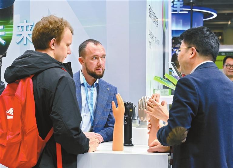 International buyers explore robotic arms at a booth during the Rehacare & Orthopedic China (Guangzhou) 2026, which opened yesterday at the Canton Fair Complex in Guangzhou. Running through Thursday, the exhibition serves as a leading platform for rehabilitation, prosthetics, orthotics, and assistive technologies in China. China News Service |