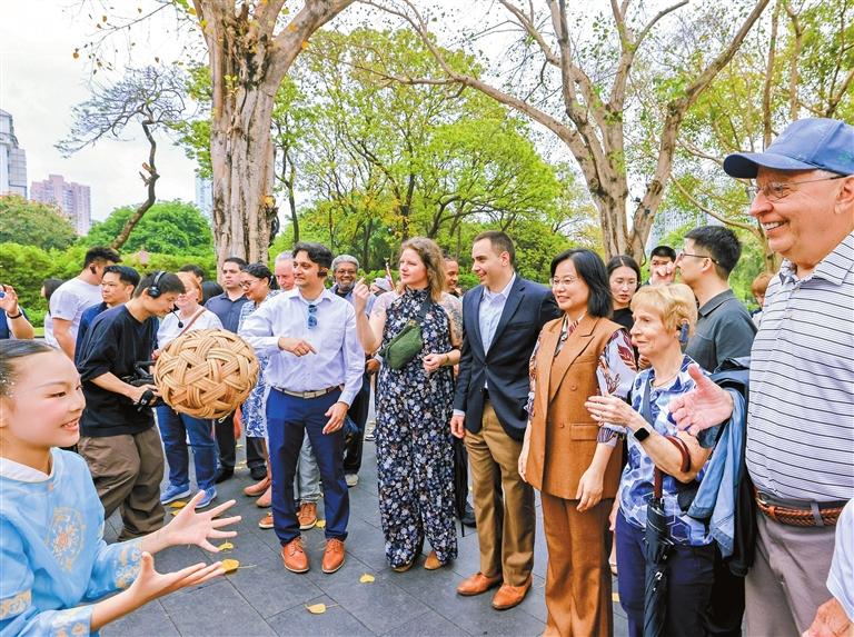 Members of a delegation from Tacoma, Washington, the U.S., watch a Chinese girl perform a dance during a visit to Nantou Ancient Town in Nanshan District on Monday. This was their first visit since Nanshan and Tacoma officially established friendship ties last November. Headed by Tacoma Mayor Anders Ibsen, the delegation consisted of city officials, teachers, and students from Lincoln High School. P3 > Wang Zhiming |