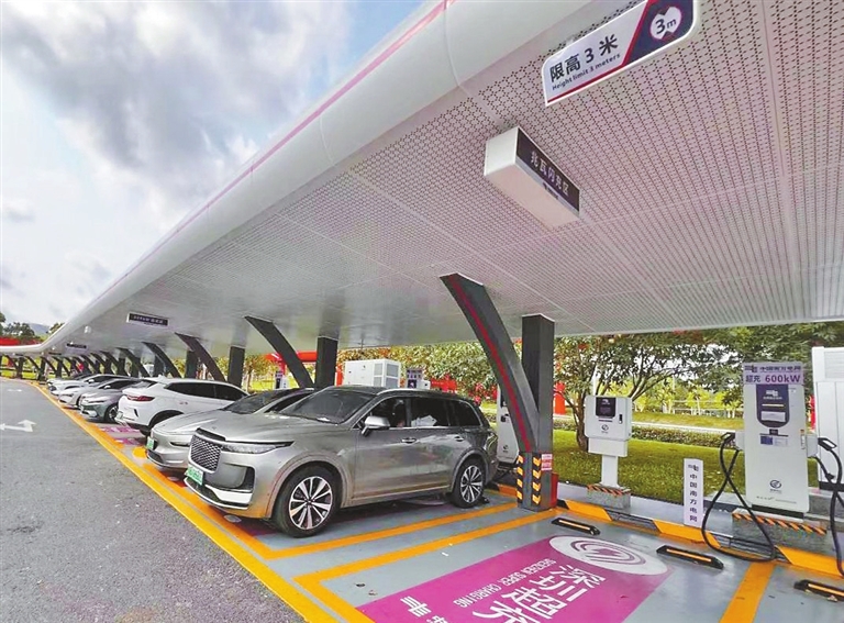 Cars park at the Hongqiao Park Supercharging Station in Guangming District. As the largest vehicle-to-grid (V2G) supercharging demonstration station in the Guangdong–Hong Kong–Macao Greater Bay Area, the facility has launched its first phase of operation. It features 23 V2G chargers across 37 parking spaces, including a megawatt-level unit with a maximum charging and discharging capacity of 1,000 kW — capable of adding 400 kilometers of range in just five minutes. The station also showcases three national firsts: China’s first 20 kV prefabricated “Power Cube” substation, the country’s first fully liquid-cooled, single-gun megawatt-level V2G charger for passenger vehicles, and the first sodium-ion battery energy storage device designed specifically for supercharging scenarios. Shenzhen Evening News |