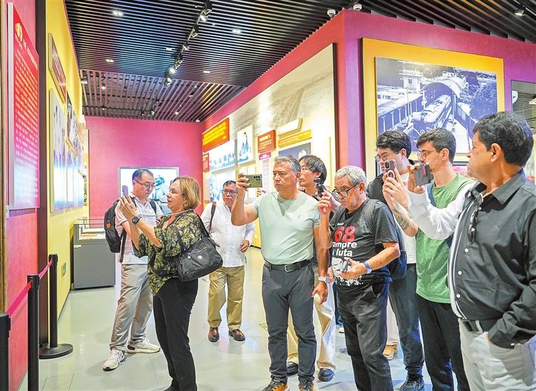 Members of a Mexican and Brazilian media delegation tour an exhibition on China’s reform and opening-up at the Shenzhen Museum of Contemporary Art and Urban Planning in Futian District on Tuesday. The three-day visit, from Monday to Wednesday, offered them an up-close look at Shenzhen’s reform achievements, tech innovation strength, and vibrant media development. Lin Jianping |