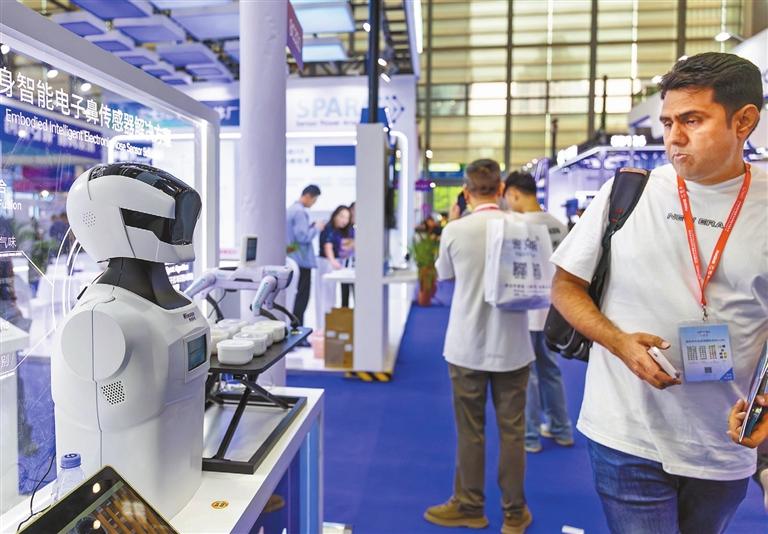 A visitor passes by an embodied intelligent robot at the Shenzhen International Sensor Technology Expo, which wraps up on Friday at the Shenzhen Convention and Exhibition Center in Futian District. Equipped with a bionic “electronic nose,” the robot can achieve high-dimensional odor perception through multi-sensor fusion and accurately analyze complex components. As a core exhibition covering China’s sensor industry chain, the expo brings together a host of international giants and leading domestic enterprises, with a focus on technological innovation and application expansion. Lai Li |