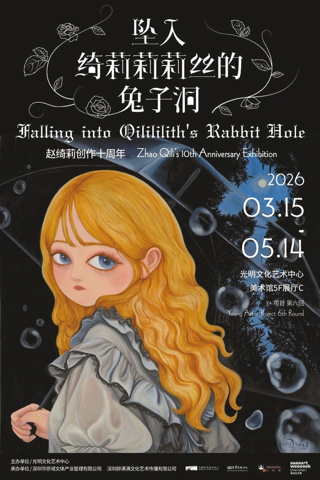 THIS spring, the Art Museum of Guangming Culture and Art Center invites visitors into the whimsical world of Zhao Qili. Running through May 14, “Falling into Qilililith’s Rabbit Hole” marks the artist’s 10th‑anniversary solo exhibition, transforming the gallery into a dreamlike wonderland. For Zhao, “falling” is not an accident — like Alice tumbling into a rabbit hole — but a conscious choice: a decision to look beyond familiar reality and trust in another kind of truth. The show gathers works from the past decade, showcasing her distinctive blend of delicate realism and theatrical fantasy. While “Alice in Wonderland” inspired her early pieces, Zhao’s work transcends mere retelling, offering a poetic continuation that opens a secluded realm where familiar stories lead into the unknown. The exhibition traces the arc of the fall. Visitors begin at the brink of curiosity, peering into the unknown, then descend into a world woven from color and brushwork. As the weight of everyday life lifts, emotions buried by routine and fantasies checked by reason gradually awaken. There is no Mad Hatter or Queen of Hearts at the end of the journey — only a quiet, mesmerising space where each viewer becomes their own Alice, navigating a visual labyrinth alone. A graduate of the Guangzhou Academy of Fine Arts, Zhao is a notable voice among the “China‑chic” generation of artists. Her work — often laced with a subtle darkness beneath its fairytale surfaces — resonates strongly with audiences, and her solo shows have become cultural highlights. Beyond painting, her aesthetic has been extended into fashion, homeware, and immersive dining experiences. Dates: Through May 14 Venue: Art Museum, Guangming Culture and Art Center, Guangming District (光明文化艺术中心美术馆) Metro: Line 6 to Fenghuang Town Station (凤凰城站), Exit B(Tang Li) |