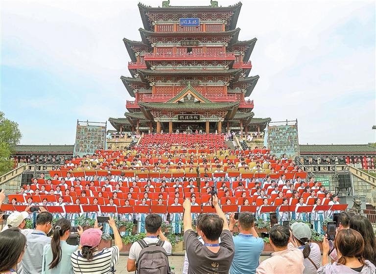 Hundreds of students dressed in traditional Chinese attire recite the classic ancient Chinese literary piece “Preface to the Pavilion of Prince Teng” in front of the Pavilion of Prince Teng in Nanchang, the capital of east China’s Jiangxi Province, yesterday, marking the launch of the first National Reading Week. Throughout the week, a variety of reading events will be held across the country, including lectures, book fairs, salons, and book donations — all aimed at promoting reading among the public. According to Xinhua News Agency, amid the growing trend of digital reading, the comprehensive reading rate among Chinese adults reached 82.3% in 2025. China News Service |