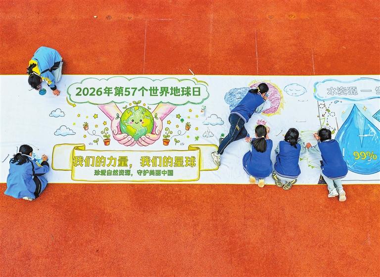 Students paint on a 100-meter-long scroll at the Anhe Campus of Zhonghe Middle School in Chengdu, southwest China’s Sichuan Province, yesterday during an event marking the world’s 57th Earth Day, which falls on today. Similar events have been held nationwide to encourage people to cherish nature and safeguard a beautiful China. First observed in 1970, Earth Day has grown into the world’s largest civic observance, now celebrated in 193 countries.Xinhua |