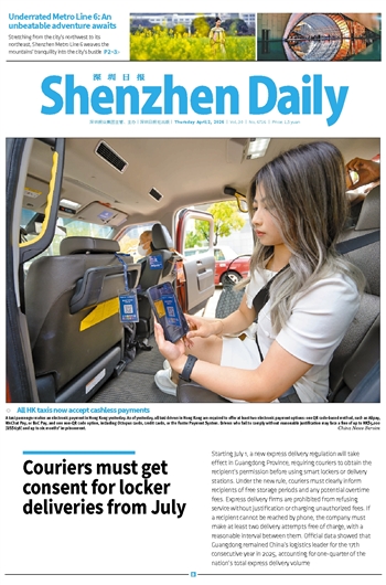 | Couriers must get consent for locker deliveries from July | | Starting July 1, a new express delivery regulation will take effect in Guangdong Province, requiring couriers to obtain the recipient’s permission before using smart lockers or delivery stations. Under the new rule, couriers must clearly inform recipients of free storage periods and any potential overtime fees. ... | | |